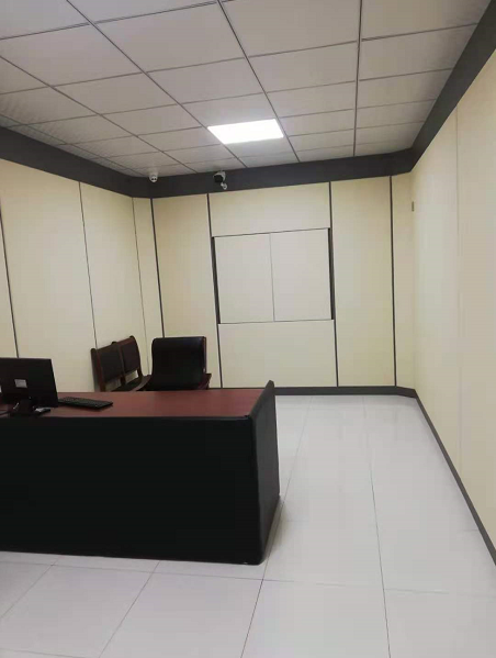這類材料的外觀較為美觀,并且有很多種顏色可以選擇,審訊室通常使用公安藍,淺灰,淺黃等顏色,鋪滿審訊室四周墻面或是高于人體身高,達到莊重大方的效果。配合燈光,更容易攻破犯罪嫌疑人的心理,幫助辦案。