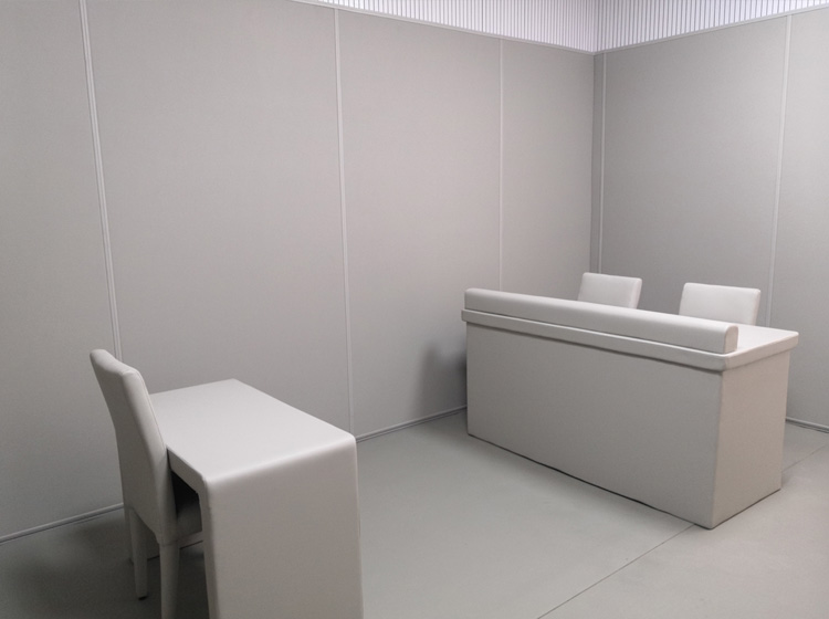 談話室防撞軟包廠家適用于公安局、檢察院、法院、檢察院、審問室、問詢室、醒酒室、羈押室、幼兒園、醫(yī)院、酒店等對(duì)聲學(xué)、防撞等對(duì)人身安全要求較嚴(yán)厲的場(chǎng)所。我廠供應(yīng)的吸音防撞軟包具有多種飾面可供不同需要的客戶挑選,一起出產(chǎn)各種造型的穿孔軟包板,蜂窩式軟包板,可用于酒店活動(dòng)間隔等聲學(xué)資料。辦案區(qū)軟包|防撞軟包|審問室吸音板?