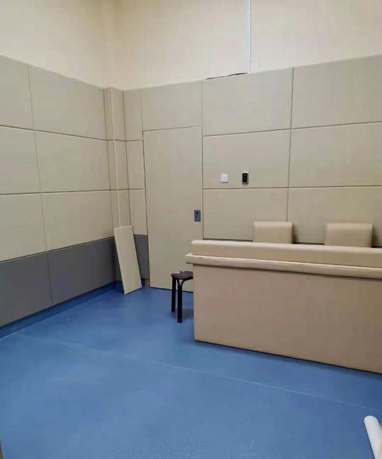 防撞軟包主要包括墻面、地面、桌椅、等都需要用到軟包處理,這些地方都是實體性物體,所以對其進行軟包化處理也是必要性,針對性建設桌椅可用海綿軟包或者橡膠棉軟包包裹,地面有專的防撞減震墊;主要還是墻面的防撞為主體,因為墻面的面積大、寬廣,是選擇撞擊自殺自殘的選擇,安裝牢固、平整、板面完好,接縫卡槽連接嚴密,密封完好線條順直,整體感觀程度好。