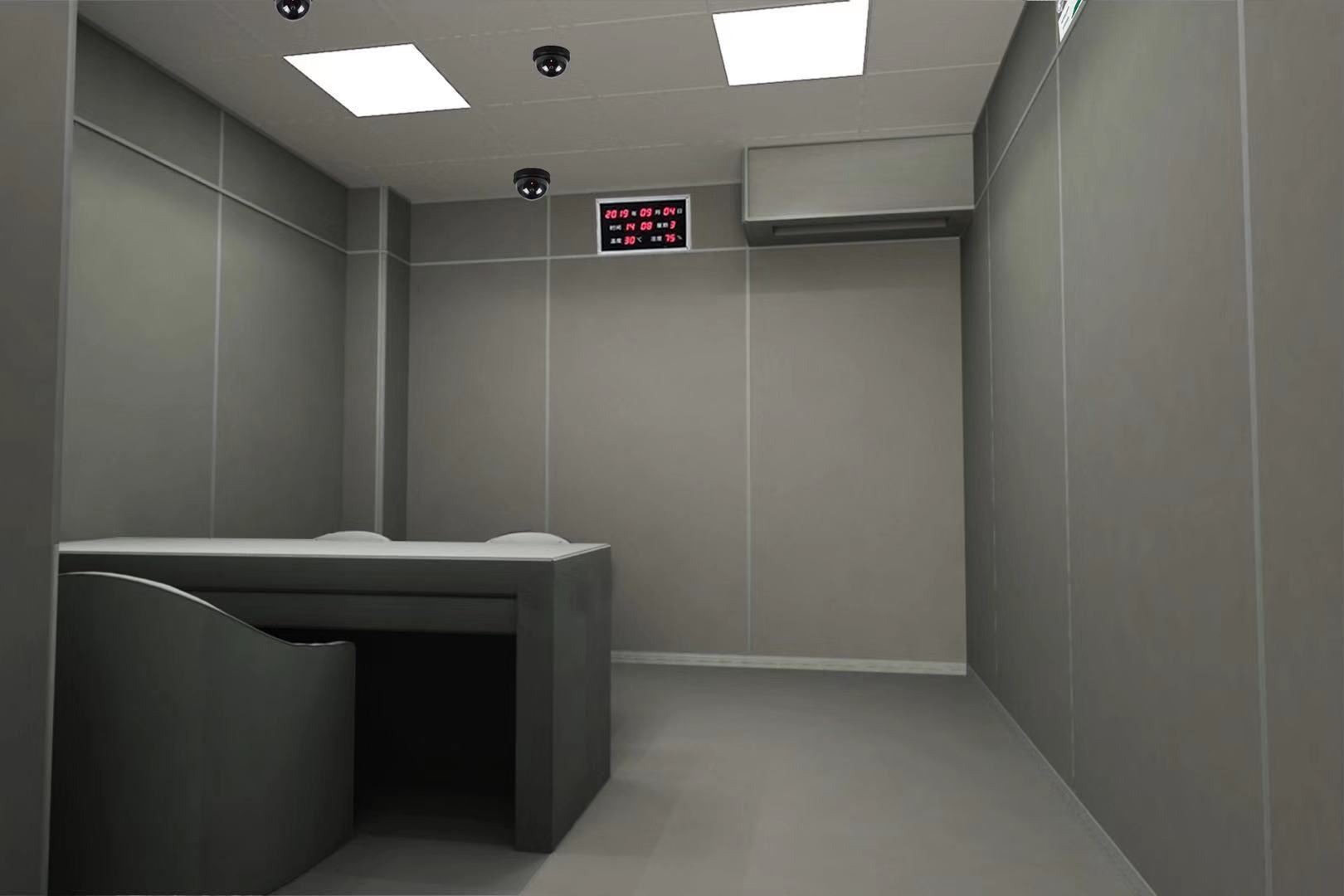 設(shè)置了檢察院、監(jiān)控室、休息室、詢問(wèn)室,建成了符合現(xiàn)代化辦案的工作需要的全程同步錄音錄像系統(tǒng)和覆蓋了全部區(qū)域的視頻監(jiān)控,信息存儲(chǔ)系統(tǒng),強(qiáng)電弱電分配系統(tǒng),應(yīng)急配電系統(tǒng)等設(shè)施。