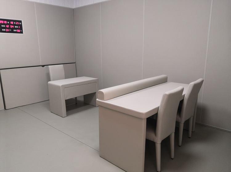 紀(jì)檢委場所可根據(jù)自身的要求定位不同,對審訊室、談話室、走讀室、訊問室進(jìn)行有區(qū)別的內(nèi)部建設(shè)。一般標(biāo)準(zhǔn)功能齊全的談話室,在配備上應(yīng)該具備盥洗室、留宿設(shè)備、談話空間,可以完成被談話人的談話室、過夜、衛(wèi)生解決需求。 一般來說談話室面積不低于30平米-50平米辦案場所。