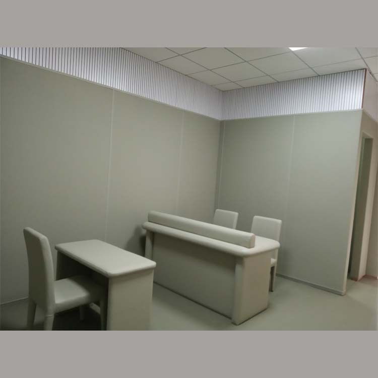 完善整墻,一般紀委談話室等公檢法辦公室都是3米高的墻,2.45米以下使用防撞墻板滿鋪,剩余高度我們是建議在防撞墻面上安裝木質吸音板,不但可以吸音降低室內回音,還可以達到墻面裝飾美觀的效果,質量好實用性強而且經濟實惠。