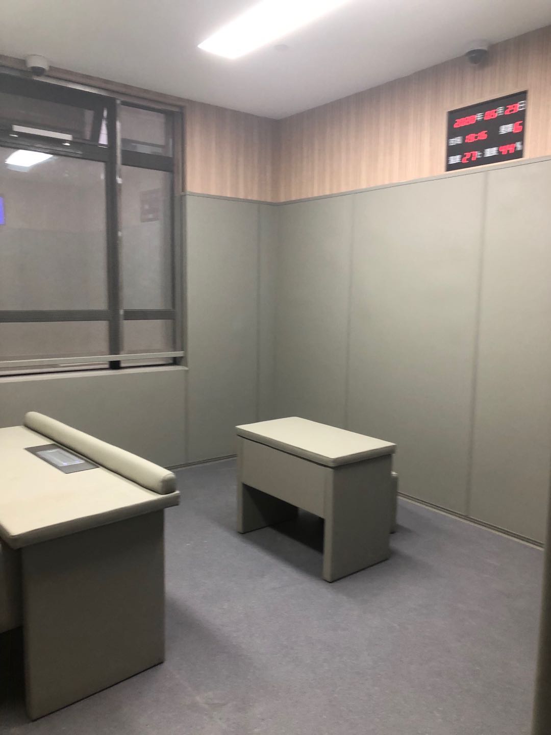 在審訊室內部主要應用材料就是聚乙稀發(fā)泡棉防撞軟包,采用新型制造方法,原材料防火阻燃的航空級皮革,阻燃工藝的聚乙稀發(fā)泡棉。厚度有2cm/2.5cm/3cm??傄?guī)格為寬1.25米,高2.45米。顏色有淺灰色,米黃色,公安藍。