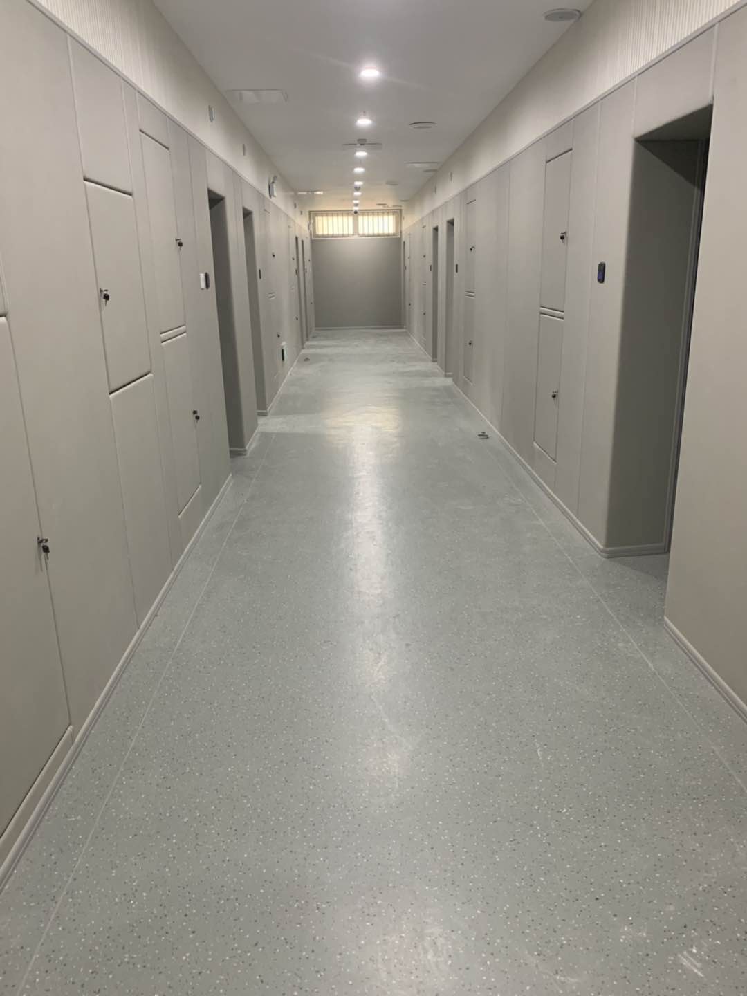 留置室軟包:采用基材具有防火阻燃功能的高彈性聚乙稀電子發(fā)泡棉,飾面采用原材料防火阻燃的皮革,兩者進(jìn)行高溫火附的無(wú)膠復(fù)合方法制造而成。經(jīng)過(guò)層層賽選,其飾面皮革顏色符合制造的色號(hào)只有淺灰色和米黃色,因?yàn)槠渌伾奈鼰嵝阅芨薨櫺阅芏环现圃炝糁檬臆洶?,所以選取了米黃色或者淺灰色為飾面顏色。制造規(guī)格為寬度1250mm,高度2450mm。總體厚度具有20mm和30mm。采用軟